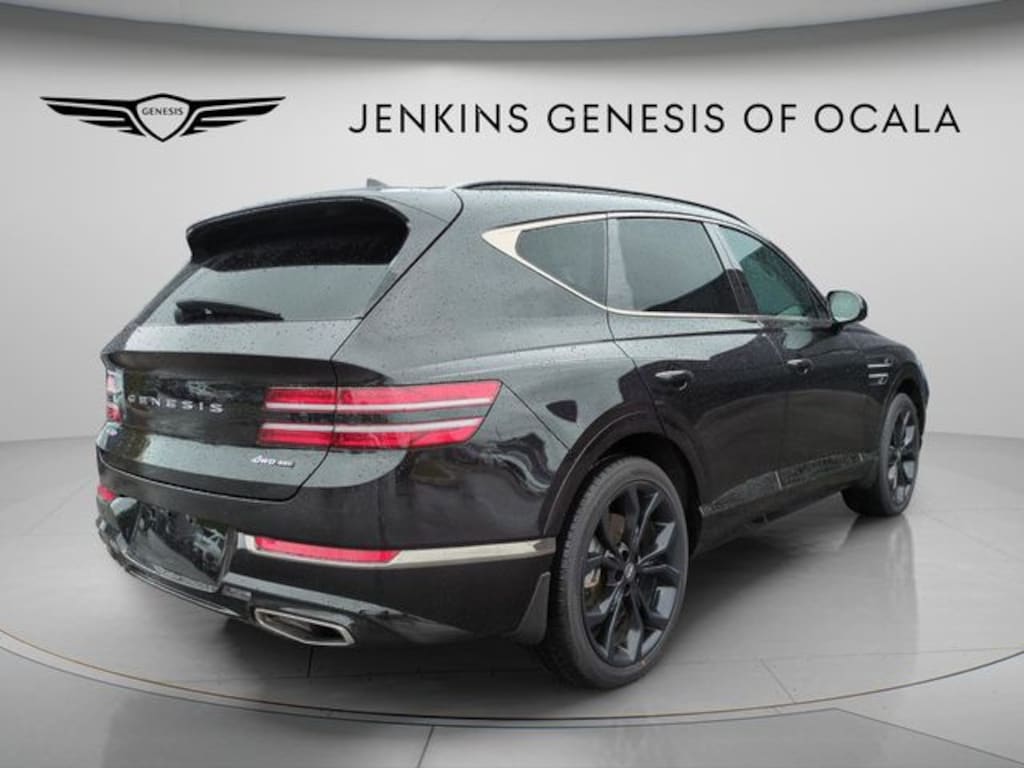 This vehicle comes equipped with Option Group 01, Genesis Certified, 21 Speakers, 3.909 Axle Ratio, 4-Wheel Disc Brakes, ABS brakes, Adaptive suspension, Air Conditioning, Alloy wheels, AM/FM radio: SiriusXM, Android Auto & Apple CarPlay, Anti-whiplash front head restraints, Auto High-beam Headlights, Auto tilt-away steering wheel, Auto-dimming door mirrors, Auto-dimming Rear-View mirror, Automatic temperature control, Brake assist, Bumpers: body-color, Compass, Delay-off headlights, Door auto-latch, Driver door bin, Driver vanity mirror, Dual front impact airbags, Dual front side impact airbags, Electronic Stability Control, Emergency communication system: Genesis Connected Services, Exterior Parking Camera Rear, Four wheel independent suspension, Front anti-roll bar, Front Bucket Seats, Front Center Armrest, Front dual zone A/C, Front reading lights, Fully automatic headlights, Garage door transmitter: HomeLink, Genuine wood console insert, Genuine wood dashboard insert, Genuine wood door panel insert, Heads-Up Display, Heated & Ventilated Front Bucket Seats, Heated door mirrors, Heated front seats, Heated rear seats, Heated steering wheel, Illuminated entry, Knee airbag, Leather steering wheel, Low tire pressure warning, Memory seat, Mudguards, Nappa Leather Seating Surfaces, Navigation System, Occupant sensing airbag, Outside temperature display, Overhead airbag, Overhead console, Panic alarm, Passenger door bin, Passenger vanity mirror, Power door mirrors, Power driver seat, Power Liftgate, Power moonroof, Power passenger seat, Power steering, Power windows, Radio data system, Radio:Lexicon Premium Audio System, Rain sensing wipers, Rear air conditioning, Rear anti-roll bar, Rear Bumper Applique, Rear reading lights, Rear seat center armrest, Rear side impact airbag, Rear window defroster, Rear window wiper, Remote keyless entry, Security system, Speed control, Speed-sensing steering, Speed-Sensitive Wipers, Split folding rear seat, Spoiler, Steering wheel memory, Steering wheel mounted audio controls, Tachometer, Telescoping steering wheel, Tilt steering wheel, Traction control, Trip computer, Turn signal indicator mirrors, Variably intermittent wipers, Ventilated front seats, Ventilated rear seats, Wheel Locks, and Wheels: 22" x 9.5J Dark Finish Split 5-Spoke Alloy .