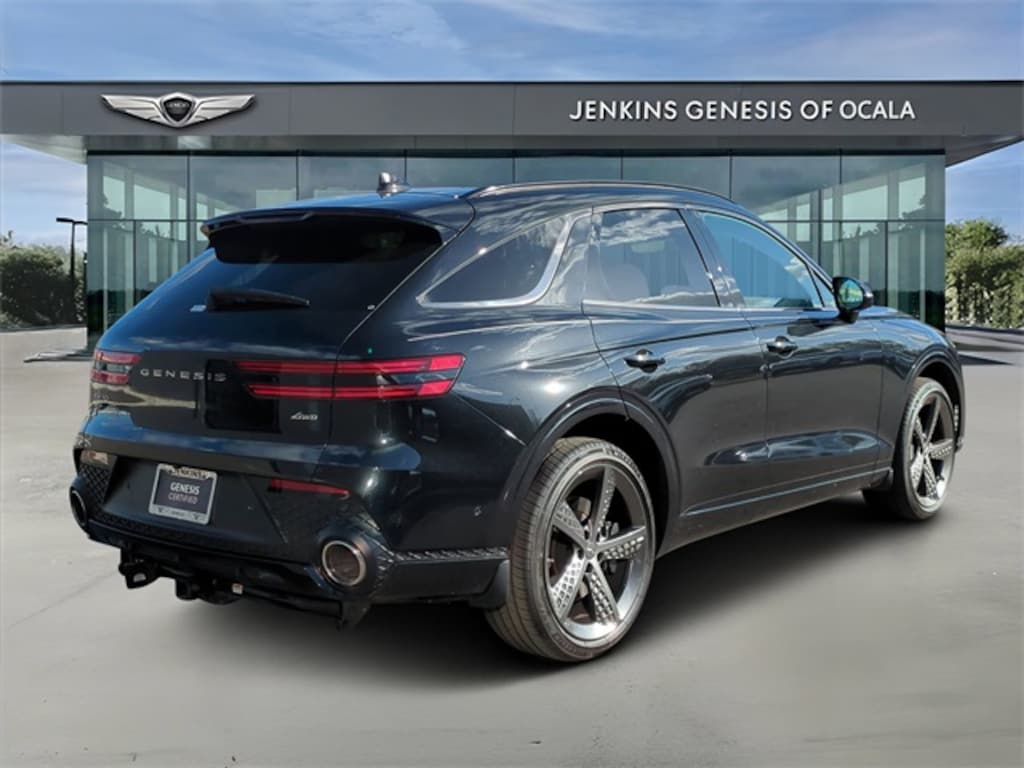 This vehicle comes equipped with Sport Prestige Package (12.3" 3D Digital Instrument Cluster, Forward Attention Warning, Genesis Digital Key, Manual Rear Door Shades, Option Group 04, and Ventilated Front Seats), Genesis Certified, 4-Wheel Disc Brakes, 9 Speakers, ABS brakes, Air Conditioning, Alloy wheels, AM/FM radio: SiriusXM, Android Auto & Apple CarPlay, Anti-whiplash front head restraints, Auto High-beam Headlights, Auto-dimming Rear-View mirror, Automatic temperature control, Brake assist, Bumpers: body-color, Cargo Cover, Cargo Net, Delay-off headlights, Driver door bin, Driver vanity mirror, Dual front impact airbags, Dual front side impact airbags, Electronic Stability Control, Emergency communication system: Genesis Connected Services, Exterior Parking Camera Rear, First Aid Kit, Four wheel independent suspension, Front anti-roll bar, Front Bucket Seats, Front Center Armrest w/Storage, Front dual zone A/C, Front reading lights, Fully automatic headlights, Garage door transmitter: HomeLink, Heated door mirrors, Heated Front Bucket Seats, Heated front seats, Illuminated entry, Knee airbag, Leather steering wheel, Leatherette Seating Surfaces, Low tire pressure warning, Navigation System, Occupant sensing airbag, Outside temperature display, Overhead airbag, Overhead console, Panic alarm, Passenger door bin, Passenger vanity mirror, Power door mirrors, Power driver seat, Power Liftgate, Power passenger seat, Power steering, Power windows, Radio: 14.5" Navigation System w/AM/FM/HD Radio, Rain sensing wipers, Rear anti-roll bar, Rear Parking Sensors, Rear reading lights, Rear seat center armrest, Rear window defroster, Rear window wiper, Remote keyless entry, Reversible Cargo Tray, Security system, Speed control, Speed-sensing steering, Speed-Sensitive Wipers, Split folding rear seat, Spoiler, Steering wheel mounted audio controls, Tachometer, Telescoping steering wheel, Tow Hitch, Traction control, Trip computer, Turn signal indicator mirrors, Variably intermittent wipers, and Wheels: 19" Dark Hyper Silver Alloy .