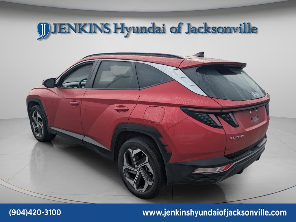 CARFAX One-Owner. Clean CARFAX. This 2023 Hyundai Tucson SEL in Calypso Red features Convenience Package (10.25" Digital Instrument Cluster, Auto-Dimming Interior Mirror w/Homelink, Dual Automatic Temperature Control, H-Tex Seat Trim, Leather-Wrapped Shift Knob, Leather-Wrapped Steering Wheel, LED Interior Lights (Room, Map), Option Group 02, Power Sunroof, Ultrasonic Rear Occupant Alert, and Wheels: 19" x 7.5J" Machine-Face Finish Alloy), 3.648 Axle Ratio, 4-Wheel Disc Brakes, 6 Speakers, ABS brakes, Air Conditioning, Alloy wheels, AM/FM radio: SiriusXM, Apple CarPlay & Android Auto, Auto High-beam Headlights, Brake assist, Bumpers: body-color, Cargo Net, Cargo Tray, Carpeted Floor Mats, Delay-off headlights, Driver door bin, Driver vanity mirror, Dual front impact airbags, Dual front side impact airbags, Electronic Stability Control, Emergency communication system: Blue Link Connected Car Service (3-year complimentary subscription), First Aid Kit, Four wheel independent suspension, Front and Rear Mudguards, Front anti-roll bar, Front Bucket Seats, Front Center Armrest, Front reading lights, Fully automatic headlights, Heated door mirrors, Heated Front Bucket Seats, Heated front seats, Illuminated entry, Low tire pressure warning, Occupant sensing airbag, Outside temperature display, Overhead airbag, Overhead console, Panic alarm, Passenger door bin, Passenger vanity mirror, Power door mirrors, Power driver seat, Power Liftgate, Power steering, Power windows, Radio data system, Radio: AM/FM/HD/SiriusXM Audio System, Rear anti-roll bar, Rear seat center armrest, Rear window defroster, Rear window wiper, Remote keyless entry, Roof rack: rails only, Security system, Speed control, Split folding rear seat, Spoiler, Stain & Odor Resistant Cloth Seat Trim, Steering wheel mounted audio controls, Tachometer, Telescoping steering wheel, Tilt steering wheel, Traction control, Trip computer, Turn signal indicator mirrors, Variably intermittent wipers, and Wheels: 17" x 7.0J" Alloy . Visit our showroom 24/7 at Jenkinshyundaiofjacksonville or call 904-420-3100. AWD
