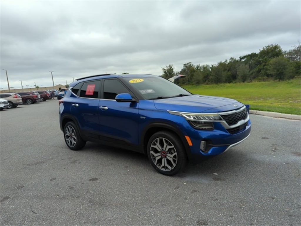 Certification Program Details: Certified Select Details: * Roadside Assistance * Limited Warranty: 6 Month/6,000 Mile (whichever comes first) from original in-service date * Warranty Deductible: $100 * Vehicles with less than 100,000 miles on odometer - GTR/NV not eligible. 1 prepaid service visit included with first year of ownership (excludes EVs). Certification Fee - Only $199. * Transferable Warranty * Vehicle History * 84 Point Inspection Neptune Blue 25/30 City/Highway MPG 2021 Kia Seltos SX AWD 7-Speed Automatic I4