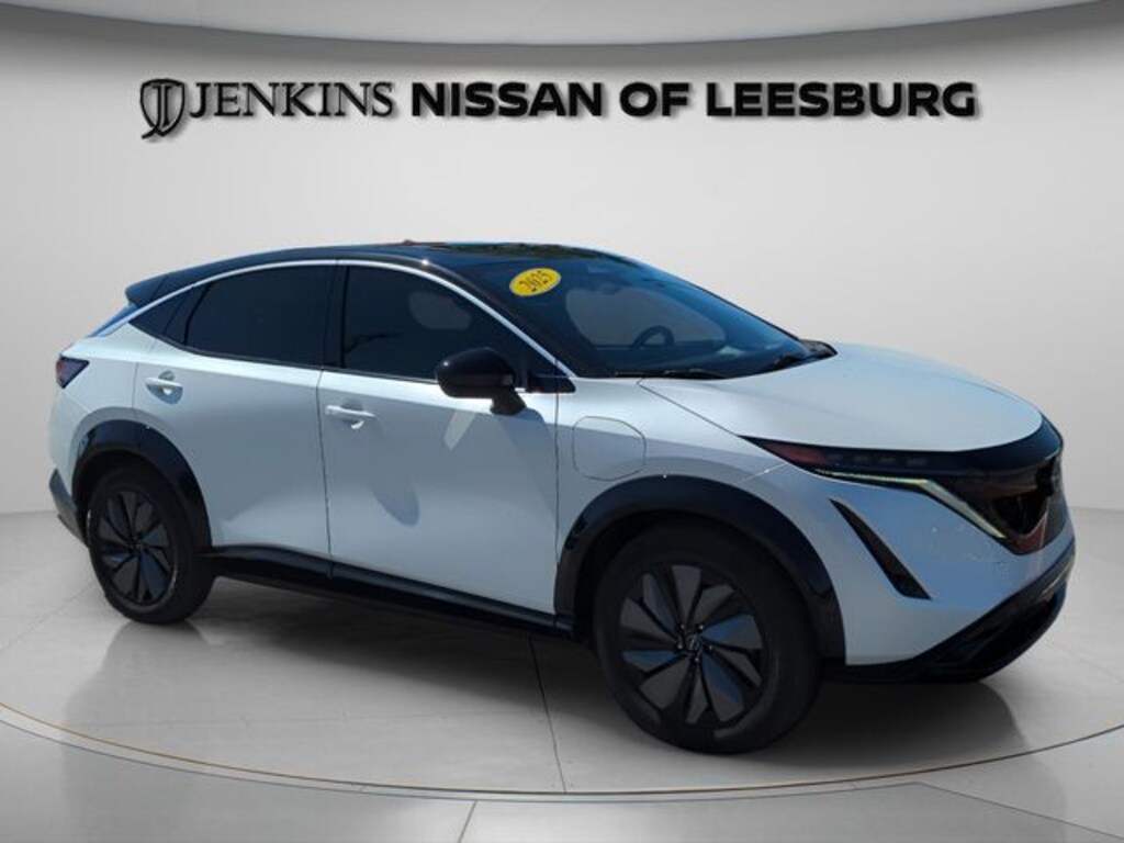 WHAT A FIND!! THIS GORGEOUS AND VERSATILE ARIYA IS BETTER THAN NEW THANKS TO LOW LOW MILES AND NISSAN CERTIFICATION! ORIGINAL MSRP $47450... YOU'LL ENJOY LONGER FACTORY BACKED WARRANTY VS NEW AND FOR MUCH LESS OF YOUR HARD EARNED MONEY! IT'S SPORTING THE HOTTEST COLOR COMBO AND PACKED FULL OF ALL THE RIGHT STUFF! LIKE A HUGE PANORAMIC SUNROOF - HEATED LEATHER SEATING FRONT AND REAR ALONG WITH DRIVER MEMORY FUNCTIONS - A HEADS UP DISPLAY - INTELLIGENT CRUISE WITH STEERING ASSIST, STOP N GO CAPABILITIES, AND SIGN RECOGNITION SO IT EVEN ASKS IF YOU'D LIKE TO ADJUST YOUR SPEED WHEN THE SPEED LIMIT CHANGES - POWER LIFTGATE - RAIN SENSING WIPERS - WIRELESS CHARGING - BLIND SPOT, REAR CROSS TRAFFIC, AND LANE DEPARTURE WARNINGS! IT EVEN HAS AUTOMATIC EMERGENCY BRAKING WITH PEDESTRIAN DETECTION... DON'T DRAG YOUR FEET AND MISS OUT ON THIS GREAT OPPORTUNITY TO SAVE HUGE ON A 'BRAND NEW' ARIYA! 19" Alloy Wheels, Active Cruise Control, Auto High-beam Headlights, Auto-dimming Rear-View mirror, Automatic temperature control, Garage door transmitter: HomeLink, Heads-Up Display, Heated Front Bucket Seats, Heated steering wheel, Knee airbag, Leatherette Seating Surfaces, Memory seat, Navigation system: Nissan Door to Door Connected Navigation, Overhead airbag, Power Liftgate, Power moonroof, Premium Paint w/Two-Tone, Rain sensing wipers, Split folding rear seat. Enjoy Peace of Mind with Jenkins Nissan's EXCLUSIVE NATIONWIDE LIFETIME UNLIMITED MILEAGE WARRANTY! (See dealer for details, year and mileage limits apply). Jenkins has been doing business for over 50 years and we appreciate your business! Our used cars undergo an extensive Detail and Reconditioning Process, and are thoroughly inspected to meet the criteria for our exclusive warranty. Buy with confidence at Jenkins Nissan of Leesburg! The price does not include reconditioning, tax, tag, license, an electronic filing fee of $449.00**, a private tag agency fee of $199.00**, and a predelivery service charge of $1199.00** **This charge represents costs and profit to the dealer for items such as inspecting, cleaning, and adjusting vehicles, as well as preparing documents related to the sale.* EPA-estimate metric: these are contingent on ideal conditions within a lab. Real-world situations such as carrying passengers or cargo, using climate control, driving style, and ambient temperatures can affect actual metrics. 105/91 City/Highway MPG Clean CARFAX. CARFAX One-Owner.