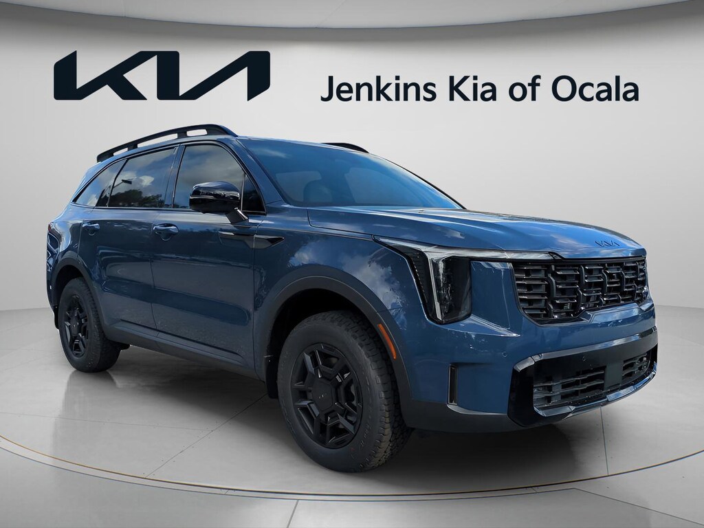 20/27 City/Highway MPG AWD. Midnight Lake Blue 2026 Kia Sorento X-Pro SX Prestige AWD 8 Speed Dual Clutch 2.5L I4 DGI Turbocharged DOHC 16V LEV3-SULEV30 281hp 20/27 City/Highway MPG