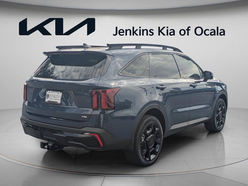 20/27 City/Highway MPG AWD. Midnight Lake Blue 2026 Kia Sorento X-Line SX Prestige AWD 8 Speed Dual Clutch 2.5L I4 DGI Turbocharged DOHC 16V LEV3-SULEV30 281hp 20/27 City/Highway MPG