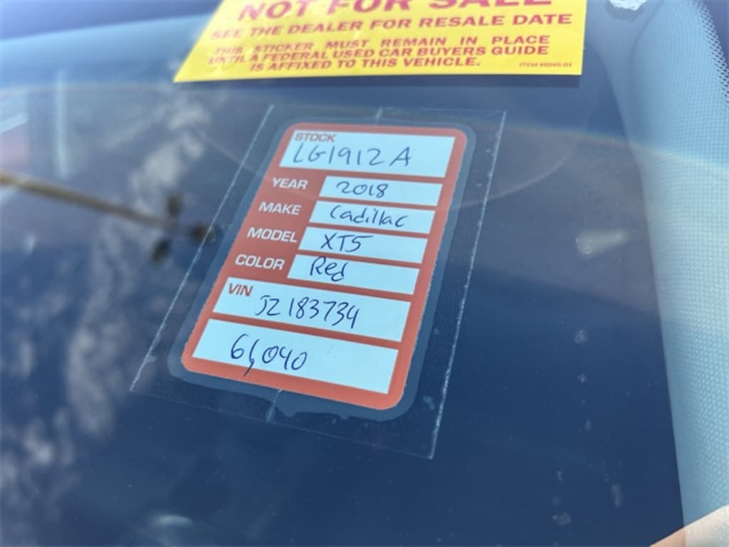 The price does not include tax, tag, license, an electronic filing fee of $449.00**, a private tag agency fee of $199.00**, and a predelivery service charge of $1199.00** **This charge represents costs and profit to the dealer for items such as inspecting, cleaning, and adjusting vehicles, as well as preparing documents related to the sale.* EPA-estimate metric: these are contingent on ideal conditions within a lab. Real-world situations such as carrying passengers or cargo, using climate control, driving style, and ambient temperatures can affect actual metrics. 19/26 City/Highway MPG Red Passion Tintcoat 2018 Cadillac XT5 Premium Luxury FWD 8-Speed Automatic 3.6L V6 DI VVT