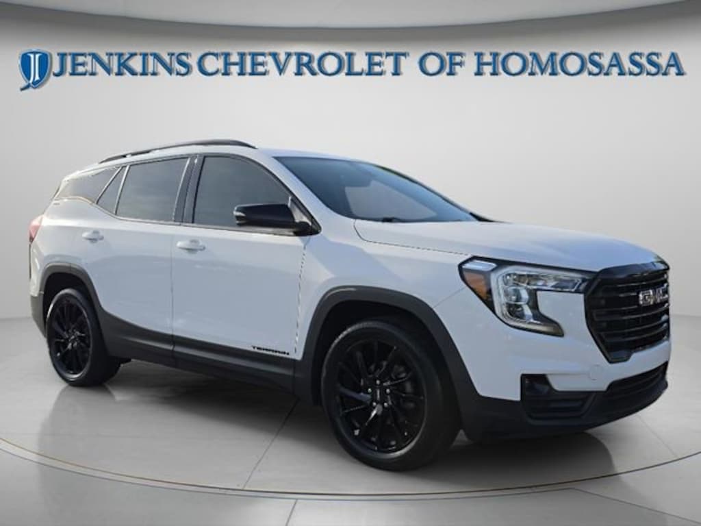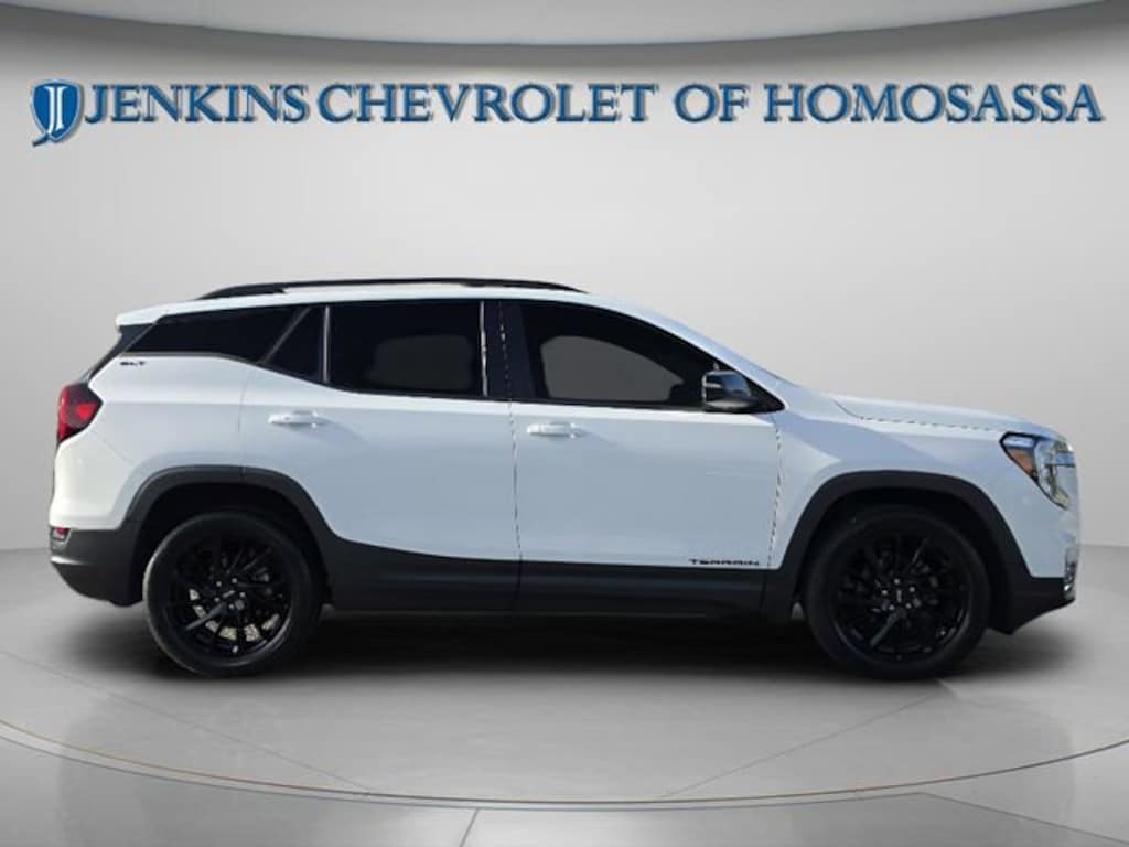 This vehicle comes equipped with Elevation Edition (Black GMC Center Caps w/Red GMC Lettering, Black Mirror Caps, Darkened Front Grille, Roof-Mounted Luggage Rack Side Rails, and Wheels: 19 Gloss Black Aluminum), Preferred Equipment Group 4SA, Side Blind Zone & Rear Cross Traffic (Lane Change Alert w/Side Blind Zone Alert and Rear Cross-Traffic Alert), Terrain Pro Safety Plus (Adaptive Cruise Control, Rear Park Assist, and Safety Alert Seat), 2 USB Data Ports, 2 USB Data Ports w/SD Card Reader, 3.47 Axle Ratio, 4-Wheel Disc Brakes, 6 Speakers, 6-Speaker Audio System Feature, 6-Way Power Front Passenger Seat, 8-Way Power Driver Seat Adjuster, ABS brakes, Air Conditioning, Alloy wheels, AM/FM radio: SiriusXM, Auto High-beam Headlights, Auto-dimming Rear-View mirror, Automatic temperature control, Bluetooth® For Phone, Brake assist, Bumpers: body-color, Compass, Delay-off headlights, Driver & Front Passenger Heated Seats, Driver door bin, Driver vanity mirror, Dual front impact airbags, Dual front side impact airbags, Electronic Stability Control, Emergency communication system: OnStar and GMC connected services capable, Four wheel independent suspension, Front anti-roll bar, Front Bucket Seats, Front Center Armrest, Front dual zone A/C, Front fog lights, Front Passenger 2-Way Power Lumbar, Front reading lights, Fully automatic headlights, Garage door transmitter, Heated door mirrors, Heated front seats, Heated steering wheel, Illuminated entry, Low tire pressure warning, Memory seat, Occupant sensing airbag, Outside temperature display, Overhead airbag, Overhead console, Panic alarm, Passenger door bin, Passenger vanity mirror, Perforated Leather-Appointed Seat Trim, Power door mirrors, Power Driver Lumbar Control, Power driver seat, Power Liftgate, Power passenger seat, Power steering, Power windows, Radio data system, Radio: GMC Infotainment Audio System w/8 Display, Rear anti-roll bar, Rear seat center armrest, Rear window defroster, Rear window wiper, Remote keyless entry, Roof rack: rails only, Security system, SiriusXM Radio, Speed control, Speed-sensing steering, Split folding rear seat, Spoiler, Steering wheel mounted audio controls, Tachometer, Telescoping steering wheel, Tilt steering wheel, Traction control, Trip computer, Turn signal indicator mirrors, Variably intermittent wipers, Wheels: 18 x 7 Silver Painted Aluminum, and Wireless Apple CarPlay/Wireless Android Auto . Jenkins Chevrolet of Homosassa proudly serving Homosassa, Spring Hill, Hernando, Crystal River, Beverly Hills, Inverness. Just a half hour North of Buccaneer Bay. Come see the large, expansive inventory of the Jenkins Auto Group. 24/29 City/Highway MPG Clean CARFAX. CARFAX One-Owner. Summit White 2023 GMC Terrain SLT FWD 9-Speed Automatic 1.5L DOHC