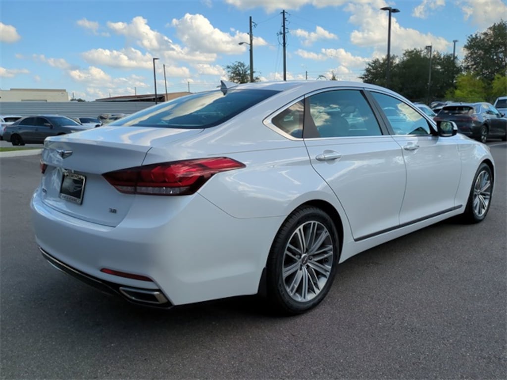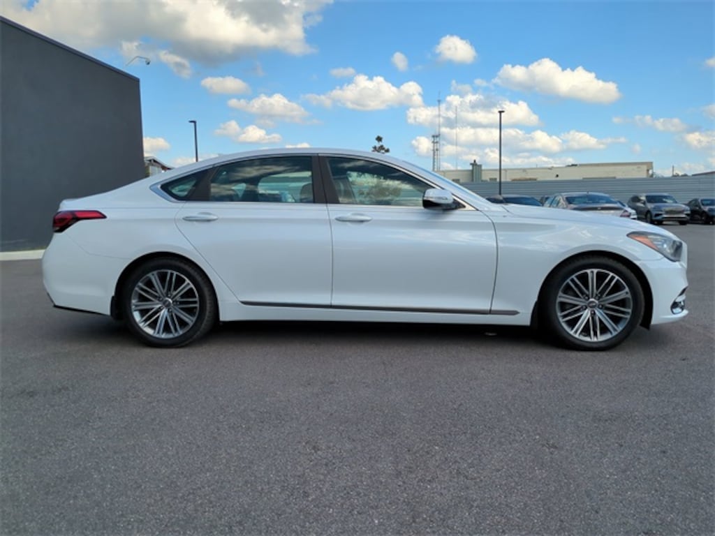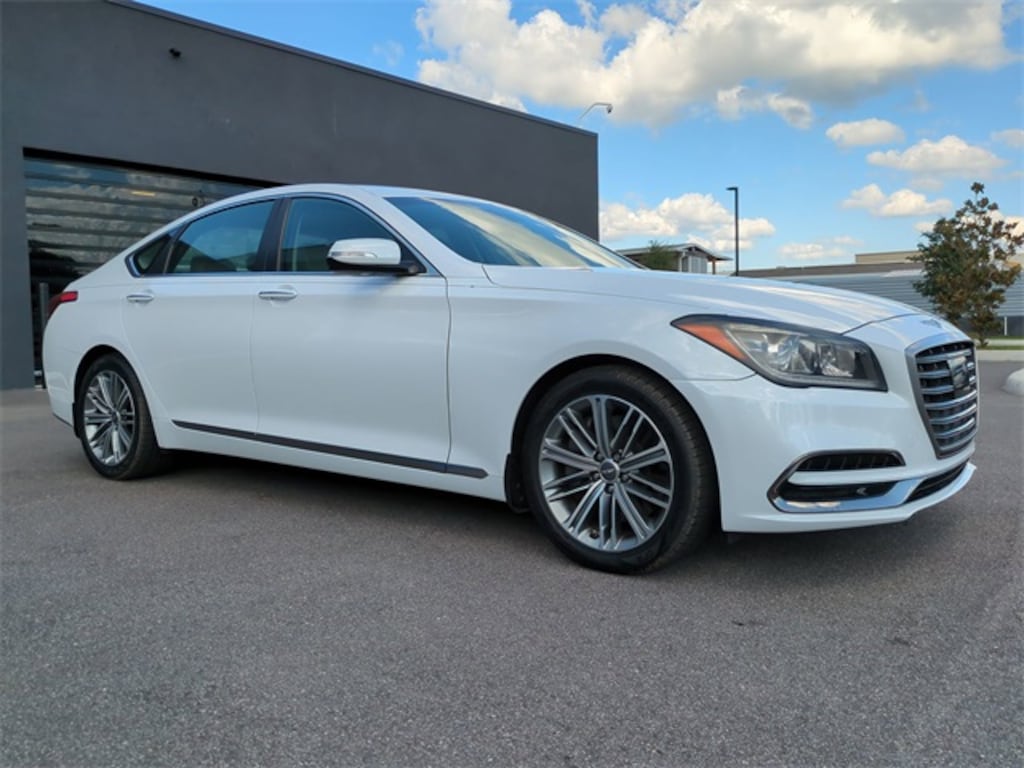 The price does not include tax, tag, license, an electronic filing fee of $449.00**, a private tag agency fee of $199.00**, and a predelivery service charge of $1199.00** **This charge represents costs and profit to the dealer for items such as inspecting, cleaning, and adjusting vehicles, as well as preparing documents related to the sale.* EPA-estimate metric: these are contingent on ideal conditions within a lab. Real-world situations such as carrying passengers or cargo, using climate control, driving style, and ambient temperatures can affect actual metrics. White 2019 Genesis G80 3.8 8-Speed Automatic with SHIFTRONIC V6
