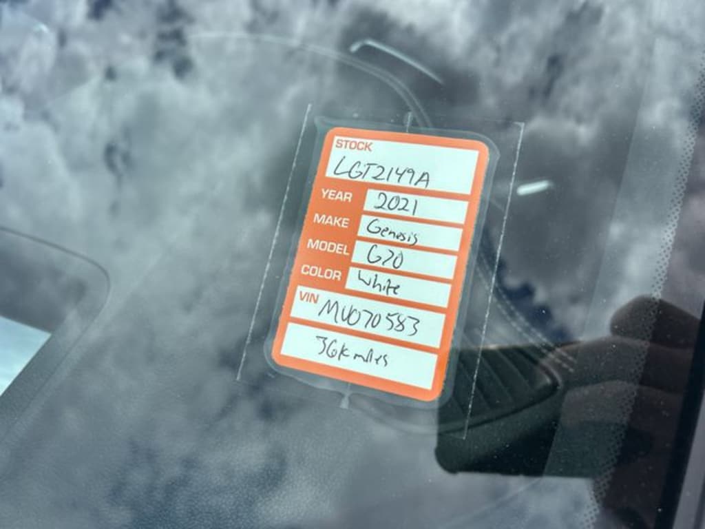The price does not include tax, tag, license, an electronic filing fee of $449.00**, a private tag agency fee of $199.00**, and a predelivery service charge of $1199.00** **This charge represents costs and profit to the dealer for items such as inspecting, cleaning, and adjusting vehicles, as well as preparing documents related to the sale.* EPA-estimate metric: these are contingent on ideal conditions within a lab. Real-world situations such as carrying passengers or cargo, using climate control, driving style, and ambient temperatures can affect actual metrics. 17/26 City/Highway MPG Uyuni White 2021 Genesis G70 3.3T RWD 8-Speed Automatic V6
