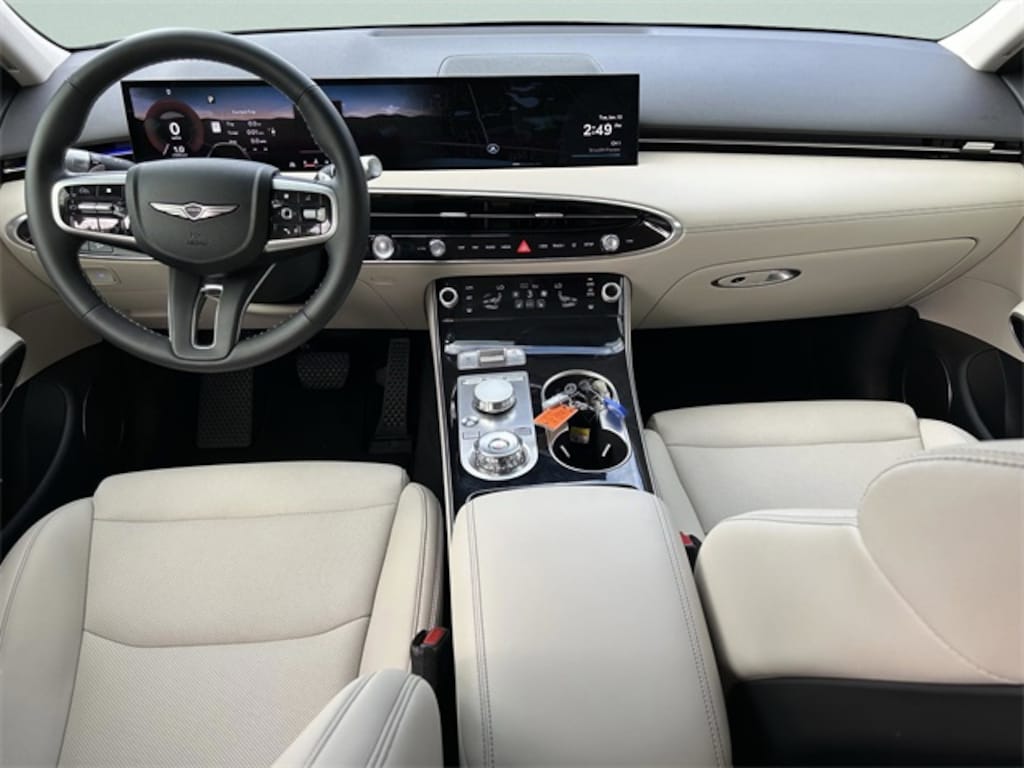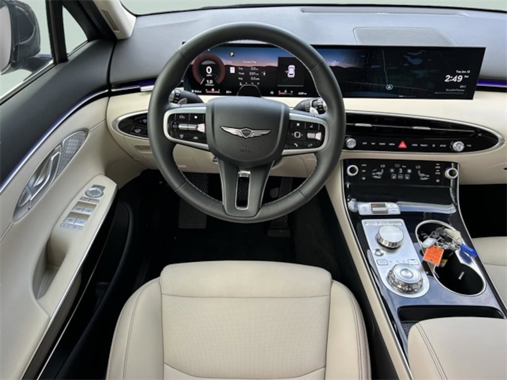 This vehicle comes equipped with Option Group 01, 4-Wheel Disc Brakes, 9 Speakers, ABS brakes, Air Conditioning, Alloy wheels, AM/FM radio: SiriusXM, Android Auto & Apple CarPlay, Anti-whiplash front head restraints, Auto High-beam Headlights, Auto-dimming Rear-View mirror, Automatic temperature control, Brake assist, Bumpers: body-color, Cargo Block, Cargo Net, Cargo Tray, Delay-off headlights, Driver door bin, Driver vanity mirror, Dual front impact airbags, Dual front side impact airbags, Electronic Stability Control, Emergency communication system: Genesis Connected Services, Exterior Parking Camera Rear, First Aid Kit, Four wheel independent suspension, Front anti-roll bar, Front Bucket Seats, Front Center Armrest w/Storage, Front dual zone A/C, Front reading lights, Fully automatic headlights, Garage door transmitter: HomeLink, Heated door mirrors, Heated Front Bucket Seats, Heated front seats, Illuminated entry, Knee airbag, Leather steering wheel, Leatherette Seating Surfaces, Low tire pressure warning, Navigation System, Occupant sensing airbag, Outside temperature display, Overhead airbag, Overhead console, Panic alarm, Passenger door bin, Passenger vanity mirror, Power door mirrors, Power driver seat, Power Liftgate, Power passenger seat, Power steering, Power windows, Radio: 14.5" Navigation System with AM/FM/HD, Rain sensing wipers, Rear anti-roll bar, Rear reading lights, Rear seat center armrest, Rear window defroster, Rear window wiper, Remote keyless entry, Security system, Speed control, Speed-sensing steering, Speed-Sensitive Wipers, Split folding rear seat, Spoiler, Steering wheel mounted audio controls, Tachometer, Telescoping steering wheel, Traction control, Trip computer, Turn signal indicator mirrors, Variably intermittent wipers, and Wheels: 19" Light Hyper Silver Alloy . 22/28 City/Highway MPG