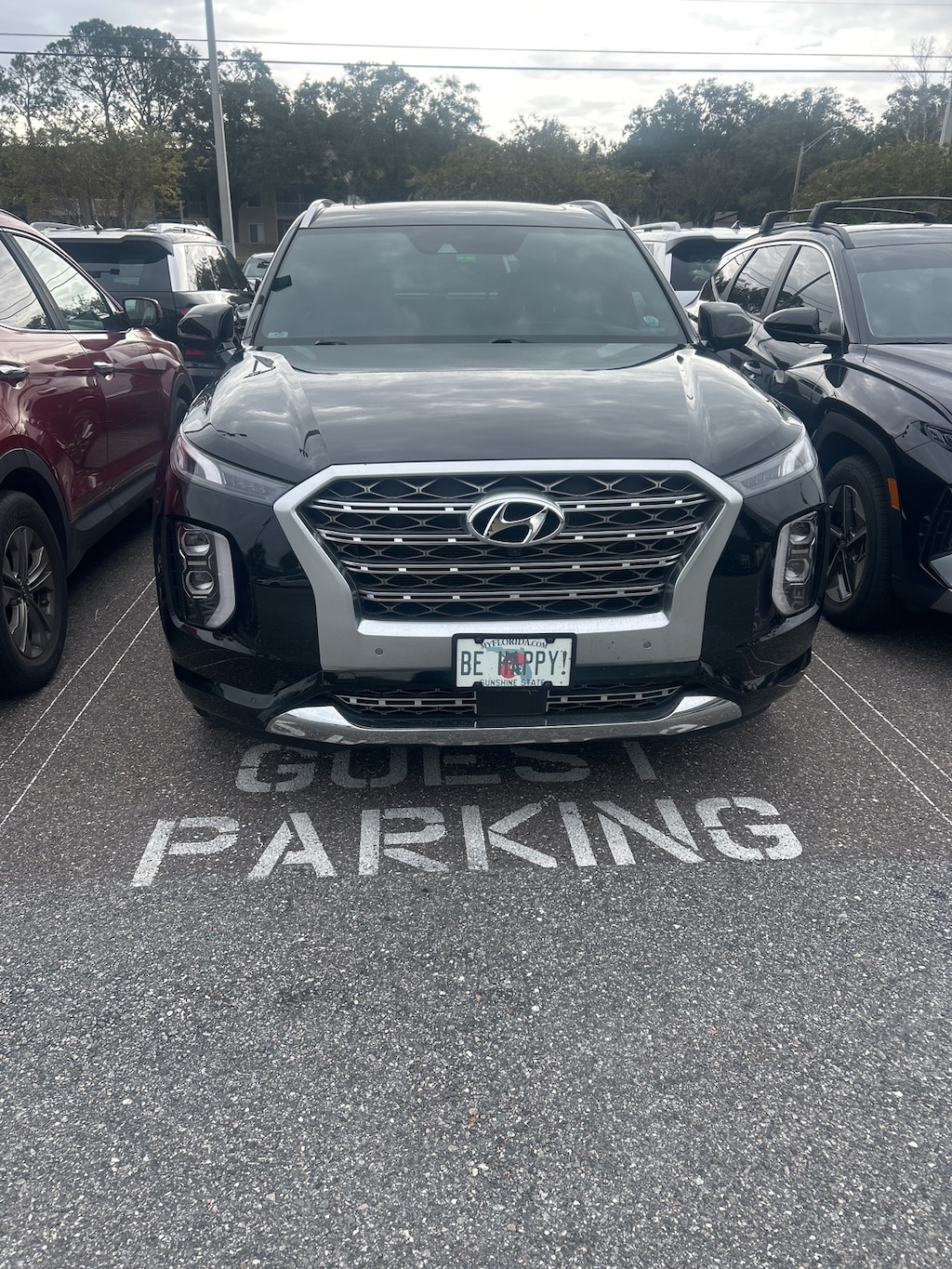 The price does not include tax, tag, license, an electronic filing fee of $449.00**, a private tag agency fee of $199.00**, and a predelivery service charge of $1199.00** **This charge represents costs and profit to the dealer for items such as inspecting, cleaning, and adjusting vehicles, as well as preparing documents related to the sale. * EPA-estimate metric: these are contingent on ideal conditions within a lab. Real-world situations such as carrying passengers or cargo, using climate control, driving style, and ambient temperatures can affect actual metrics. 19/24 City/Highway MPG CARFAX One-Owner. This 2020 Hyundai Palisade Limited in Becketts Black features Option Group 01, Winter Weather Package (All-Season Fitted Liners and Mudguards), 12 Speakers, 3.648 Axle Ratio, 3rd row seats: split-bench, 4-Wheel Disc Brakes, ABS brakes, Air Conditioning, Alloy wheels, AM/FM radio: SiriusXM, Apple CarPlay & Android Auto, Auto High-beam Headlights, Auto-dimming Rear-View mirror, Auto-leveling suspension, Automatic temperature control, Brake assist, Bumper Applique, Bumpers: body-color, Cargo Cover/Screen, Cargo Tray, Compass, Delay-off headlights, Driver door bin, Driver vanity mirror, Dual front impact airbags, Dual front side impact airbags, Electronic Stability Control, Emergency communication system, Four wheel independent suspension, Front anti-roll bar, Front Bucket Seats, Front Center Armrest, Front dual zone A/C, Front reading lights, Fully automatic headlights, Garage door transmitter: HomeLink, harman/kardon® Speakers, Heads-Up Display, Heated & Ventilated Front Bucket Seats, Heated door mirrors, Heated front seats, Heated rear seats, Heated steering wheel, Illuminated entry, Knee airbag, Low tire pressure warning, Memory seat, Navigation System, Occupant sensing airbag, Outside temperature display, Overhead airbag, Overhead console, Panic alarm, Passenger door bin, Passenger vanity mirror, Power door mirrors, Power driver seat, Power Liftgate, Power moonroof, Power passenger seat, Power steering, Power windows, Premium Nappa Leather Seat Trim, Radio data system, Radio: AM/FM/MP3 Premium Audio System, Rain sensing wipers, Rear air conditioning, Rear anti-roll bar, Rear window defroster, Rear window wiper, Reclining 3rd row seat, Remote keyless entry, Security system, Speed control, Speed-sensing steering, Split folding rear seat, Spoiler, Steering wheel mounted audio controls, Tachometer, Telescoping steering wheel, Tilt steering wheel, Tow Hitch, Traction control, Trip computer, Turn signal indicator mirrors, Variably intermittent wipers, Ventilated front seats, Ventilated rear seats, and Wheels: 20" x 7.5J 14-Spoke Premium Finish Alloy . Visit our showroom 24/7 at Jenkinshyundaiofjacksonville or call 904-420-3100. AWD
