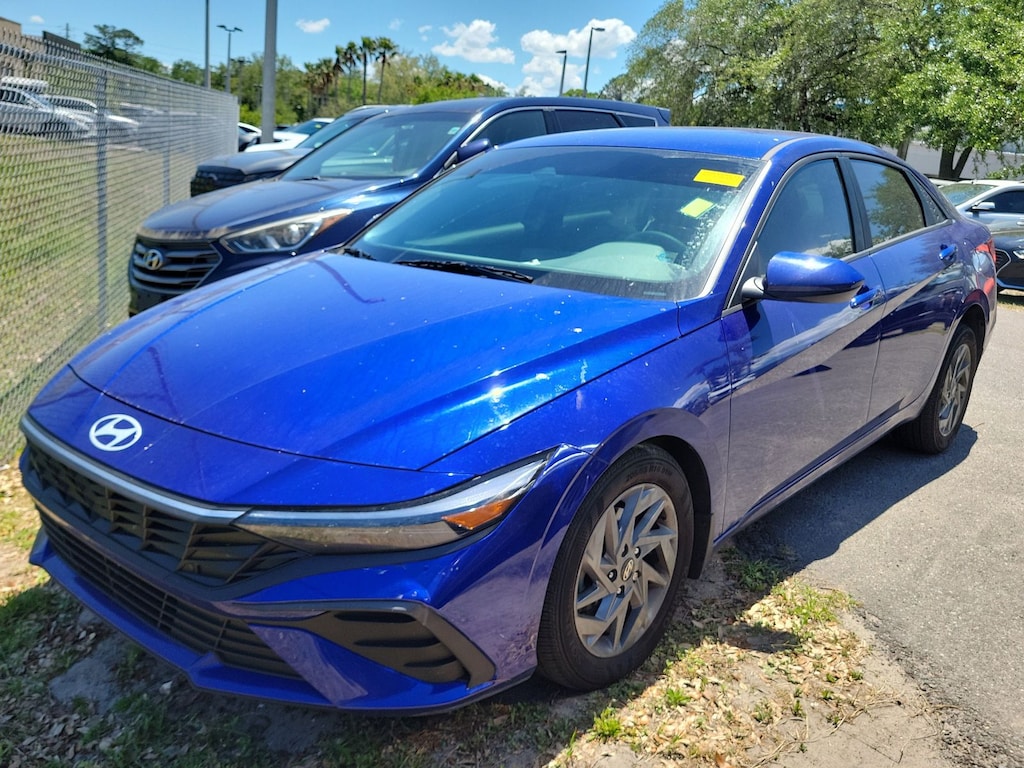 CARFAX One-Owner. Clean CARFAX. This 2024 Hyundai Elantra SEL in Intense Blue features Option Group 01, 16" x 6.5J Alloy Wheels, 4-Wheel Disc Brakes, 6 Speakers, ABS brakes, Air Conditioning, Alloy wheels, AM/FM radio: SiriusXM, Apple CarPlay & Android Auto, Auto High-beam Headlights, Automatic temperature control, Brake assist, Bumpers: body-color, Carpeted Floor Mats, Cloth Seat Trim, Delay-off headlights, Driver door bin, Driver vanity mirror, Dual front impact airbags, Dual front side impact airbags, Electronic Stability Control, Emergency communication system: Bluelink+, Exterior Parking Camera Rear, First Aid Kit, Front anti-roll bar, Front Bucket Seats, Front Center Armrest, Front dual zone A/C, Front reading lights, Front wheel independent suspension, Fully automatic headlights, Illuminated entry, Low tire pressure warning, Mudguards, Navigation System, Occupant sensing airbag, Outside temperature display, Overhead airbag, Overhead console, Panic alarm, Passenger door bin, Passenger vanity mirror, Power door mirrors, Power steering, Power windows, Radio: AM/FM/HD/SiriusXM Display Audio, Rear side impact airbag, Rear window defroster, Remote keyless entry, Reversible Cargo Tray, Security system, Speed control, Speed-sensing steering, Steering wheel mounted audio controls, Tachometer, Telescoping steering wheel, Tilt steering wheel, Traction control, Trip computer, Trunk/Cargo Hook, Variably intermittent wipers, and Wheel Locks . Visit our showroom 24/7 at Jenkinshyundaiofjacksonville or call 904-420-3100. FWD