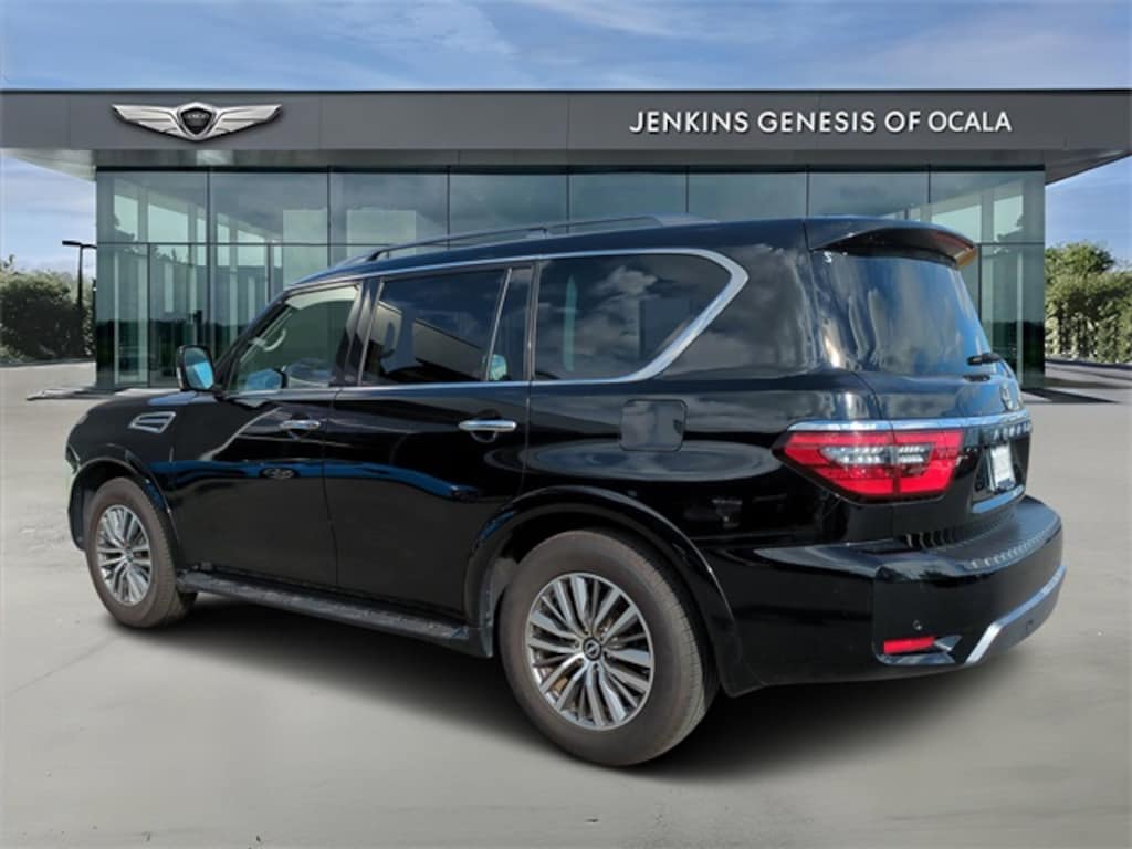 This vehicle comes equipped with Captain's Chairs Package (2nd Row Captain's Chairs and 2nd Row Center Console w/Padded Armrest), 13 Speakers, 2.94 Axle Ratio, 3rd Row Carpeted Floor Mats - Captain Seat, 3rd row seats: split-bench, 4-Wheel Disc Brakes, 6-Speaker Audio System, ABS brakes, Air Conditioning, Alloy wheels, AM/FM radio: SiriusXM, Anti-whiplash front head restraints, Auto High-beam Headlights, Auto tilt-away steering wheel, Auto-dimming door mirrors, Auto-dimming Rear-View mirror, Auto-leveling suspension, Automatic temperature control, Bose 13-Speaker Premium Audio System, Brake assist, Bumpers: body-color, Delay-off headlights, Driver door bin, Driver vanity mirror, Dual front impact airbags, Dual front side impact airbags, Electronic Stability Control, Emergency communication system: NissanConnect Services, Exterior Parking Camera Rear, Four wheel independent suspension, Front anti-roll bar, Front Bucket Seats, Front Center Armrest, Front dual zone A/C, Front fog lights, Front reading lights, Fully automatic headlights, Garage door transmitter: HomeLink, Heated door mirrors, Heated Front Bucket Seats, Heated front seats, Heated steering wheel, Illuminated entry, Knee airbag, Leather Shift Knob, Leather-Appointed Seat Trim, Low tire pressure warning, Memory seat, Navigation System, NissanConnect featuring Apple CarPlay and Android Auto, Occupant sensing airbag, Outside temperature display, Overhead airbag, Overhead console, Panic alarm, Passenger door bin, Passenger vanity mirror, Power door mirrors, Power driver seat, Power Liftgate, Power moonroof, Power passenger seat, Power steering, Power windows, Premium audio system: Bose, Radio: NissanConnect w/SiriusXM, Rear air conditioning, Rear anti-roll bar, Rear reading lights, Rear seat center armrest, Rear window defroster, Rear window wiper, Reclining 3rd row seat, Remote keyless entry, Security system, Speed control, Speed-sensing steering, Speed-Sensitive Wipers, Split folding rear seat, Spoiler, Steering wheel memory, Steering wheel mounted audio controls, Tachometer, Telescoping steering wheel, Tilt steering wheel, Traction control, Trip computer, Turn signal indicator mirrors, Variably intermittent wipers, Voltmeter, and Wheels: 20" x 8J Painted Alloy .
