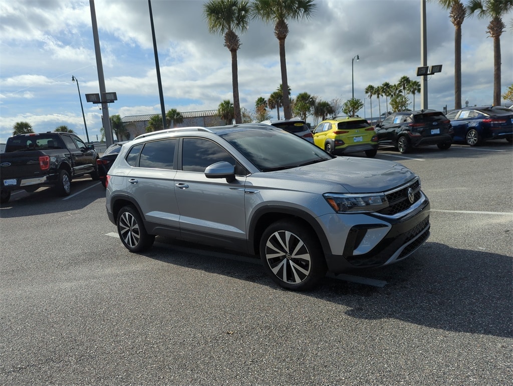 The price does not include tax, tag, license, an electronic filing fee of $449.00**, a private tag agency fee of $199.00**, and a predelivery service charge of $1199.00** **This charge represents costs and profit to the dealer for items such as inspecting, cleaning, and adjusting vehicles, as well as preparing documents related to the sale. * EPA-estimate metric: these are contingent on ideal conditions within a lab. Real-world situations such as carrying passengers or cargo, using climate control, driving style, and ambient temperatures can affect actual metrics. 28/36 City/Highway MPG Taos 1.5T SE, 4D Sport Utility, 1.5L I4 Turbocharged DOHC 16V LEV3-SULEV30 158hp, Silver Metallic, Active Blind Spot Monitor, Adaptive Cruise Control (ACC) w/Stop & Go, Automatic Rain-Sensing Front Wipers, Brake assist, Delay-off headlights, Electronic Stability Control, Emergency Assist, Emergency communication system: Car-Net, Front Assist, Hands-On Detection Sensor Steering Wheel, Heated Steering Wheel, IQ.DRIVE SE Package, Lane Assist (Lane Keeping System), Light Assist (High Beam Control), Panic alarm, Panoramic Sunroof Package, Rear Traffic Alert, Remote keyless entry, SE Convenience Package, Security system, Travel Assist (Semi-Automated Driving Assistance).